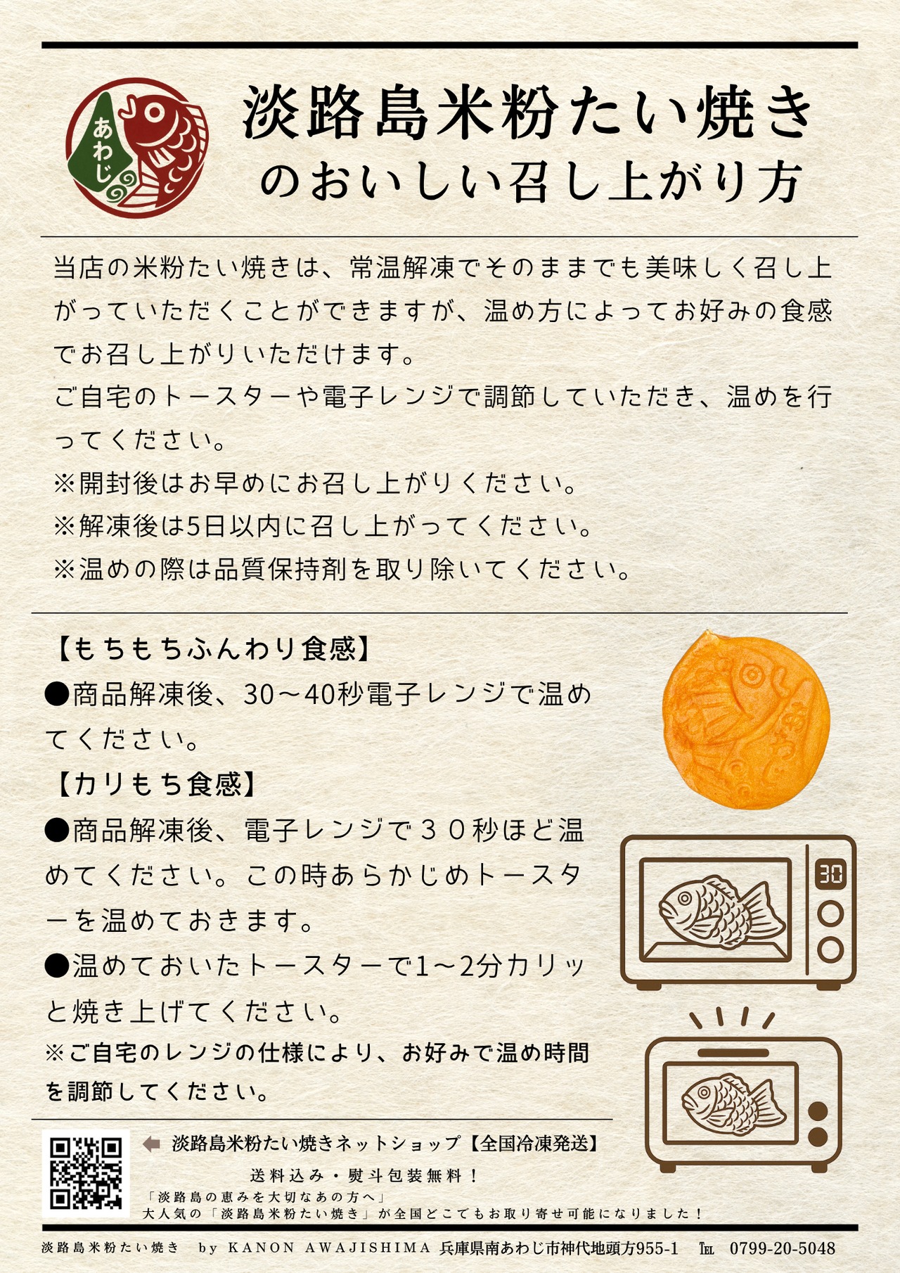 淡路島米粉たい焼きの温かみある味わいを、ぜひ一度お試しください。ご不明な点やお問い合わせは、ショップのお問い合わせからお気軽にどうぞ。