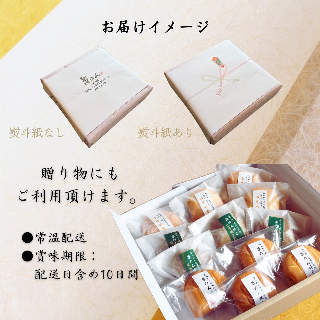 ・菓のん焼き ×4個・抹茶渋皮栗×4個・季節限定味×4個 計12個入り
